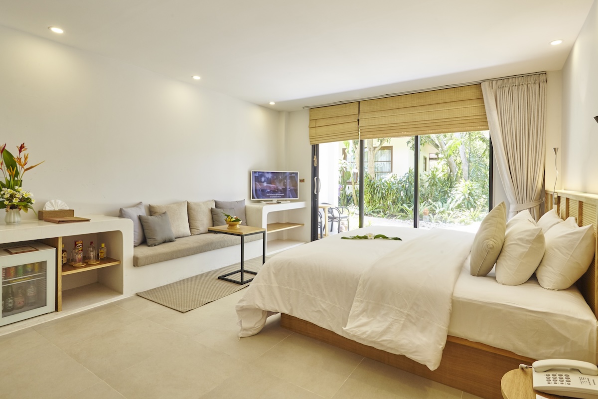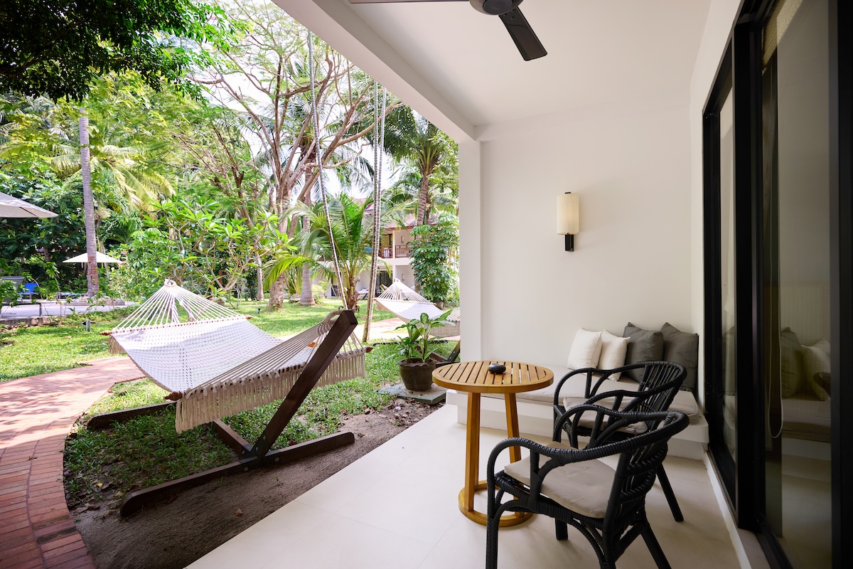 Located on the ground floor of one of the main buildings and surrounded by the resort's tropical garden, the Premium Deluxe Room offers 36 square meters of spacious comfort. Each room features a large balcony with a daybed and a private garden area complete with a freestanding hammock, ideal for unwinding in the shade after a day in the sun.